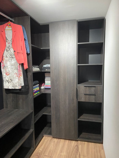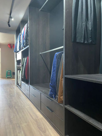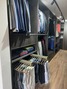 Proyecto exclusivo en color Negro Antracita, diseñado para aprovechar al máximo el espacio con elegancia y orden. Un Walk In Clóset es un clóset amplio, tipo vestidor, que te permite entrar y organizar tu ropa y accesorios de forma cómoda y visual.